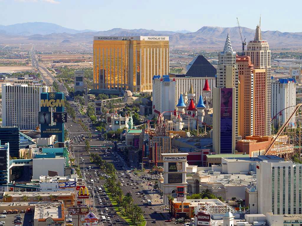 © Steffen GuthardtEine Wunderwelt mitten in der Wüste: Vom Stratosphere Tower bietet sich ein herrlicher Blick über Las Vegas. Richtig wach wird die Stadt allerdings erst nach Sonnenuntergang. -