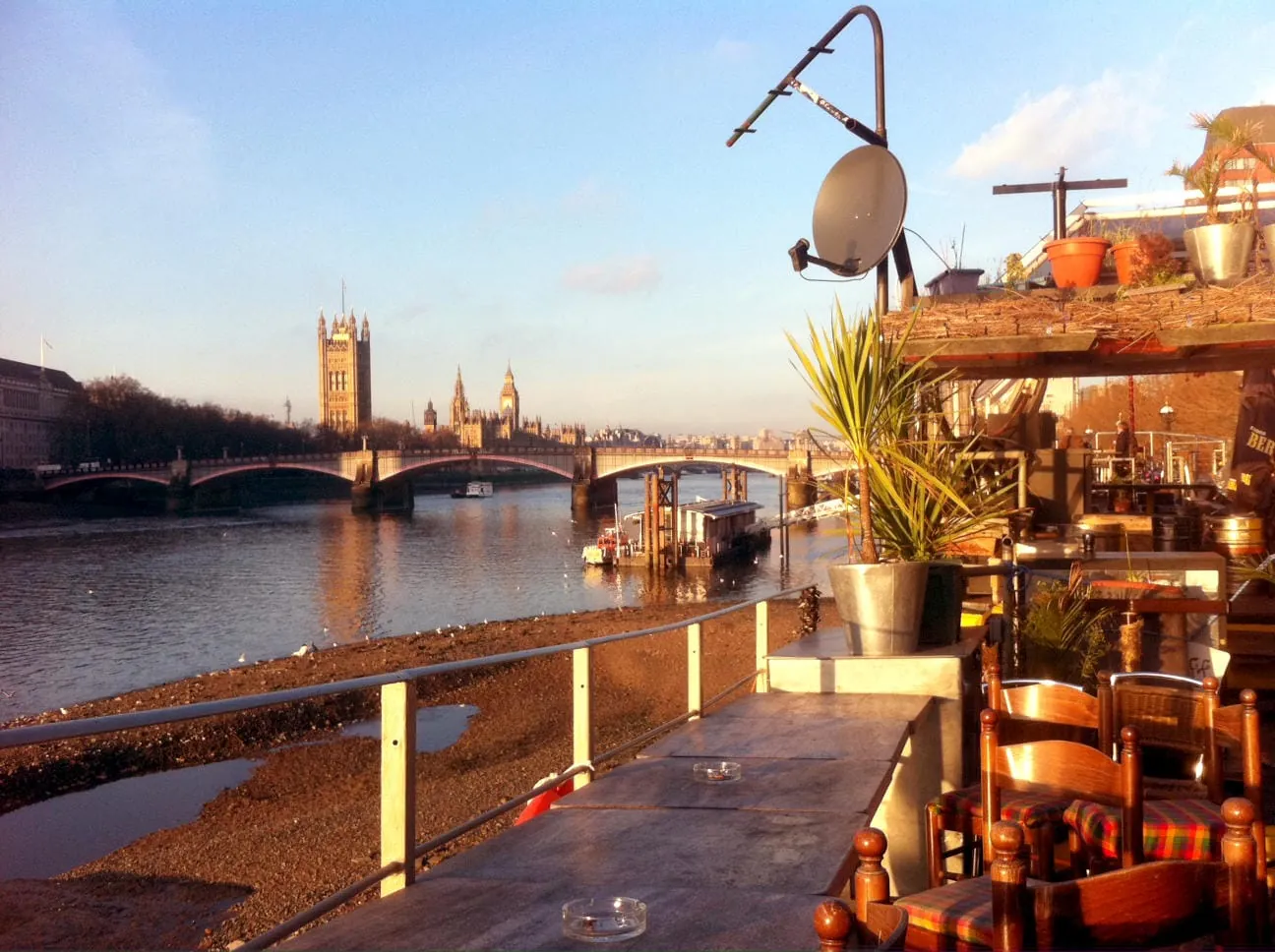 © Burkhard RieringEinen Samstagmittag in London kann man nicht besser verbringen als mit einem lässigen Spaziergang immer an der Themse entlang - also mitten durch die Stadt. Sie starten am Tower und können auf fünf Kilometern allerlei sehen, London Eye, Millennium Bridge oder Tate Modern. Sie gehen noch am Parliament vorbei und stranden auf dem Kiesbett der Themse an einem ausrangierten Schiff - das als Pub dient. -