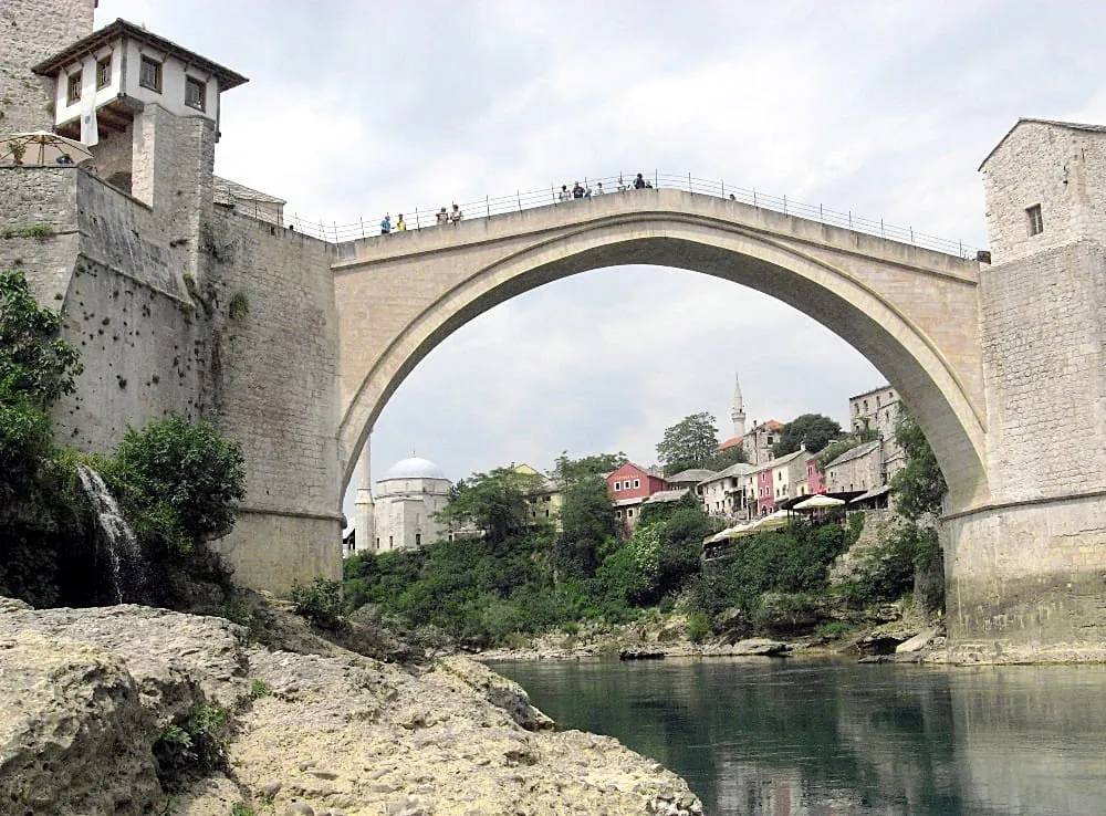 © Ulrich SteudelDas muslimisch geprägte Mostar in Bosnien ist heute nicht viel mehr als ein überlaufener Touristenmarkt. Sehenswert ist dagegen die wiederaufgebaute Brücke über die Neretva. Das weltbekannte Denkmal wurde am 9. November 1993 von der kroatischen Artillerie bombardiert und gilt als Sinnbild für die Zerstörungen im Jugoslawienkrieg. -