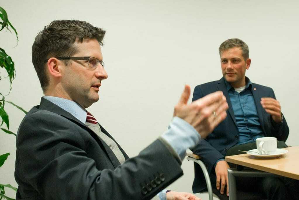 Wie kann in Zeiten des Nachwuchsmangels die Ausbildung im Handwerk noch attraktiver werden? Volker Born, Leiter der Abteilung Berufliche Bildung des Zentralverbands des Deutschen Handwerks, und Florian Haggenmiller, DGB-Bundesjugendsekretär, diskutieren über Ausbildungsqualität, Karrieren im Handwerk und die Flüchtlingskrise.