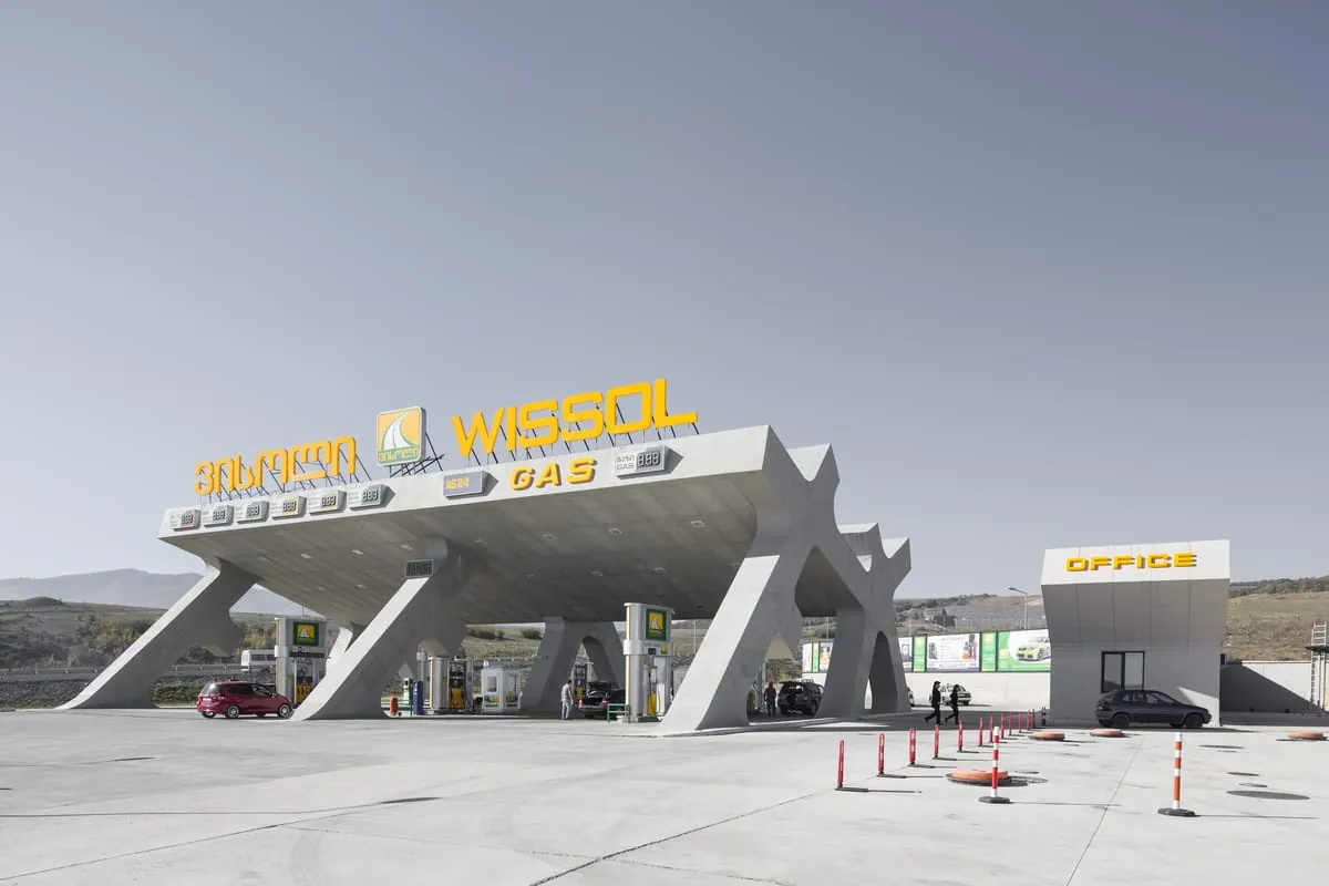 Wie ein Puzzle lässt sich diese Tankstelle theoretisch mit den Gebäuden, die sie umgeben, zusammenfügen. Sie steht ebenfalls in Georgien, in der Nähe des Hauptstadtflughafens in Tiflis.
