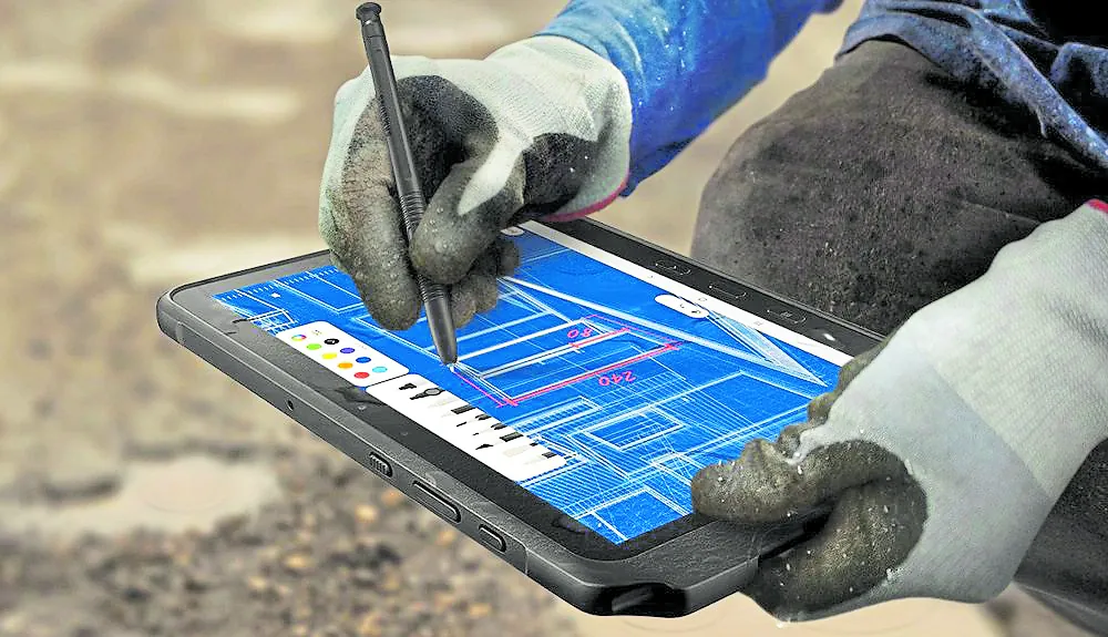 Samsung besetzt die Nische aktuell mit zwei Geräten. Das Galaxy Tab Active Pro ist gegen Staub und Wasser geschützt, hält mit der mitgelieferten Hülle Stöße und Stürze aus bis zu 1,2 Metern Höhe aus und der zehn Zoll große Bildschirm lässt sich auch mit Arbeitshandschuhen bedienen. Eine Alternative ist der integrierte Bedienstift, mit dem ganze Texte in Handschrift verfasst oder Dokumente elektronisch signiert werden können – etwa zur Abnahme von erbrachten Leistungen auf der Baustelle. Über den sogenannten DeX-Modus lässt sich das Gerät im Büro auch an einen größeren Bildschirm anschließen. Der Listenpreis für das Galaxy Tab Active Pro liegt bei 599 Euro und für die Variante mit dem Mobilfunknetz LTE bei 679 Euro.