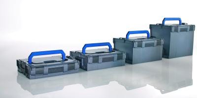 Bei der L-Boxx handelt sich um einen leichten Behälter, der in vier verschiedenen Größen angeboten wird. Durch ein einfaches Klicksystem können die verschiedenen Boxen miteinander zu kleinen Türmen zusammengefügt werden. In Verbindung mit dem zugehörigen Transportroller entstehen auf diese Weise flexible Werkzeug- und Materialkisten, die bequem im Fahrzeug arretiert und ohne viele Handgriffe von dort zum Einsatzort auf der Baustelle mitgenommen werden können.