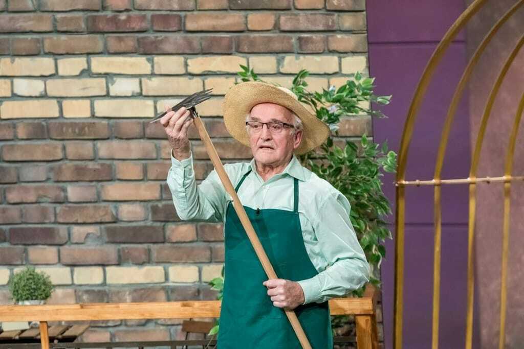 Wild: Stimmt! Ich bin seit 50 Jahren selbstständiger Tischlermeister, mein Unternehmen gibt es also schon länger als "Die Höhle der Löwen". Früher hatte ich schon mal eine Erfindung, und zwar vor zwanzig Jahren den Ruwi Spaten, mit dem man sehr kraftsparend Löcher ausheben kann. Das ist normalerweise eine sehr anstrengende Arbeit und deswegen habe ich meinen eigenen Spaten erfunden – der Prototyp war gemacht aus einem Eisenrohr, bearbeitet mit den Maschinen in meiner Werkstatt. Der Spaten ist super, vor allem auch in steinigen und harten Böden. Ich habe den Spaten auf Messen vertrieben und auch mit einem Patent geschützt. Ganz ehrlich: Meine Frau Brigitte war nicht begeistert. Das hat allerhand Geld gekostet! Dabei habe ich bei den Messen meist im Zelt geschlafen. Etwa zehn Jahre ging das so, neben der Tischlerwerkstatt. Dann wurde ich älter und hatte Schwierigkeiten mich beim Gärtnern zu bücken. Und ich bin ja grundsätzlich ein Typ, der sich mit nichts zufrieden gibt. Also habe ich mir was Neues ausgedacht: Aus einer handelsüblichen Hacke habe ich ein Dreieck rausgeschnitten. Mein Ziel: Im Stehen gärtnern. Und das hat geklappt! Mit der Ruwi Multiharke kann man das Unkraut fest packen und rausziehen. Anschließend tüftelte ich weiter und es entstand die Ruwi Multiharke.