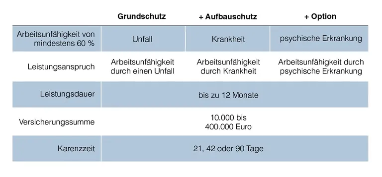 - Früher Schutz: Leistung schon ab 60 Prozent Arbeitsunfähigkeit