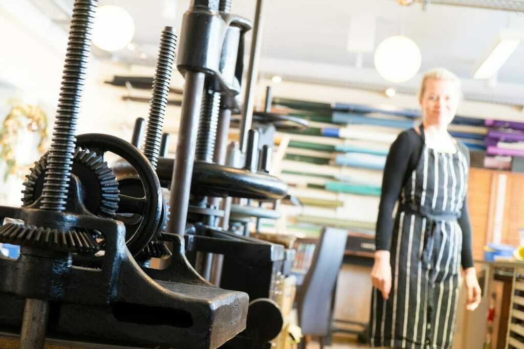 Inka Biedermann falzt, schneidet, färbt, leimt und prägt in Ihrem Ein-Frau-Betrieb alles selbst. - © Foto: Kampagnenbüro Handwerk Berlin