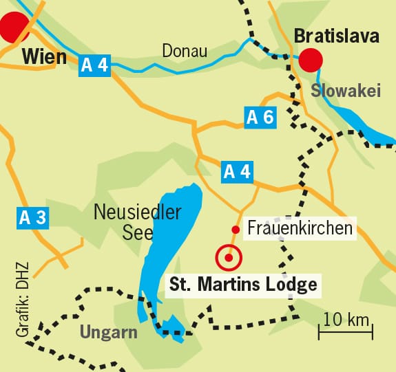 Wer die Nachtigall singen hören will, muss früh aufstehen. Um 5.30 Uhr startet die Safari-Tour zur Tierbeobachtung mit den Rangern. Sie zeigen den Gästen der St. Martins Lodge die Schönheiten der Steppenlandschaft am Neusiedler See im Burgenland. Der nur rund anderthalb Meter tiefe Steppensee liegt zwischen den österreichischen Alpenausläufern und der ungarischen Tiefebene. Diese Region rund um den Nationalpark Neusiedler See-Seewinkel gehört zum UNESCO-Welterbe.