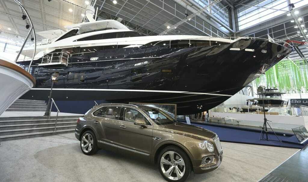 Die Branche zeigt, was im und auf dem Wasser in den nächsten Jahren zum Trend werden soll. Für einige Angebote braucht der Kunde allerdings einen großen Geldbeutel. Wie beispielsweise für die mit 30 Metern größte Yacht auf der boot 2016 - die Princess 30M. Sie beeindruckt im Innenbereich mit großen gläsernen Deckenluken, einem ausklappbaren Balkon und modernster Badausstattung mit ebenerdiger Dusche. Das Oberdeck mit Außensteuerstand, Sitz- und Sofabereichen, Liegestu¨hlen und Whirlpool wird nur teilweise von einem Hardtop beschattet und ist damit ein echtes Sonnendeck. Motorisiert ist die 120 Tonnen schwere Prinzessin mit zwei MTU Dieselaggregaten von jeweils 1.948 PS fu¨r 24 Knoten (44,44 km/h) Spitzengeschwindigkeit oder 2.637 PS fu¨r maximal 27 Knoten (50 km/h). Wer sich diesen Luxus gönnen möchte, braucht allerdings ein wenig Kleingeld im Portmonee: Der Kaufpreis der Princess aus dem englischen Plymouth liegt bei rund 7,7 Millionen Euro. Neben der Princess sind in der Halle noch weitere 60 Luxusjachten ausgestellt.