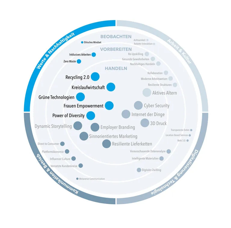 In Kooperation mit ausgewählten Experten von verschiedenen Handwerksgewerken und Fachverbänden hat die GHM, Gesellschaft für Handwerksmessen, und die Trend- und Strategieberatung TRENDONE den Trendradar 2023 erstellt.