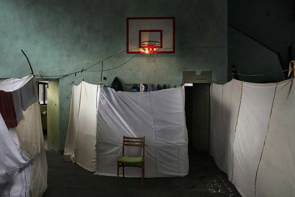 Menschen, die vor dem Konflikt in Syrien flüchteten, leben in einer improvisierten Unterkunft in der Sporthalle einer leer stehenden Schule in Sofia, Bulgarien. Die Schule diente als Notaufnahmezentrum für neu angekommene Flüchtlinge. Die Zahl der Asylbewerber, die die Grenze von der Türkei nach Bulgarien überqueren, ist 2013 stark gestiegen. Die meisten der etwa 8.000 Menschen kamen aus Syrien und Afghanistan. Bulgarien ist eins der ärmsten Länder der Europäischen Union und konnte den Zustrom kaum auffangen. Im Notaufnahmezentrum fehlten Heizung und heißes Wasser, und die Regierung konnte weder Essen noch medizinische Versorgung anbieten. Weltweit standen für die fast 2,4 Millionen syrischen Flüchtlinge nur 18.000 Aufnahmeplätze zur Verfügung.