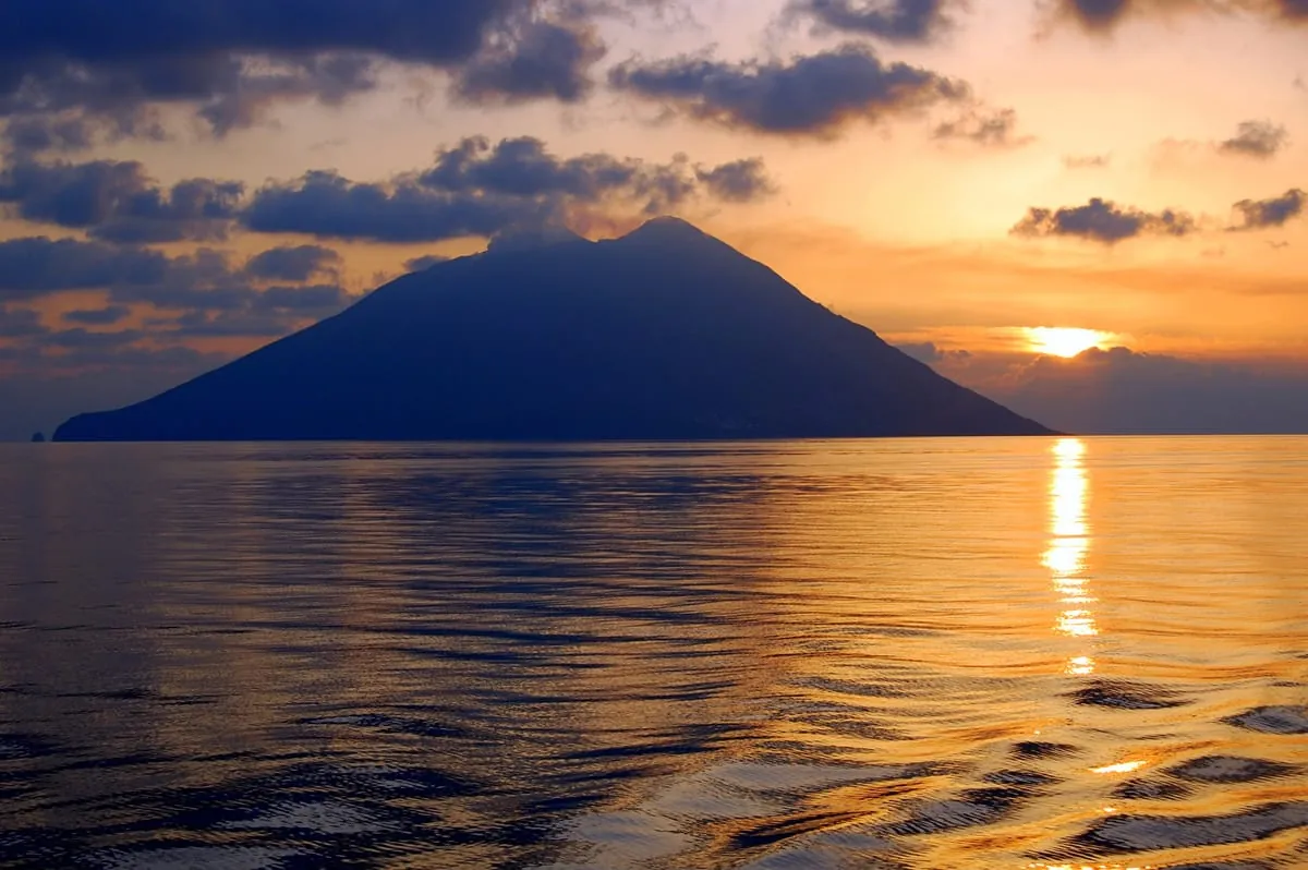 Im Norden von Sizilien liegen die Liparischen Inseln (Platz sechs). Ein Traum für Wanderlustige, vor allem, wenn hinter dem Stromboli die Sonne aufgeht.