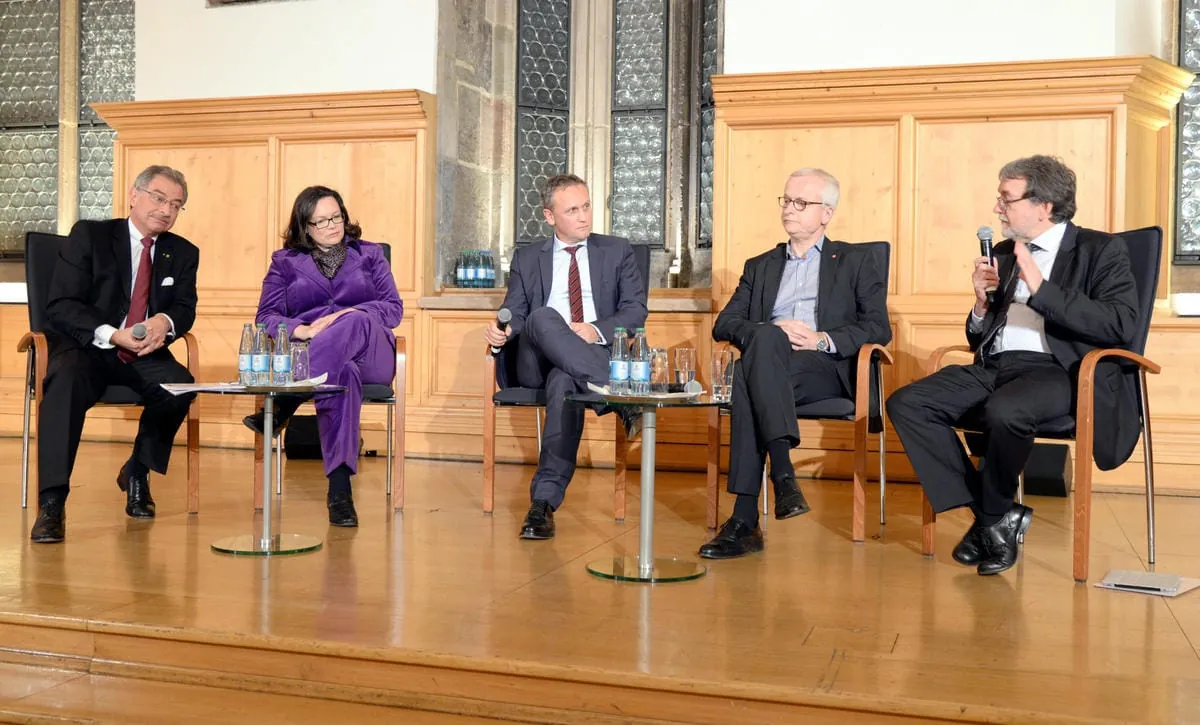 Unterhielten sich über die Auswirkungen der Digitalisierung auf den Arbeitsmarkt: Dieter Kempf, Vorstandsvorsitzender der Datev eG, Arbeitsministerin Andrea Nahles, Moderator Sven Astheimer, Hans-Jürgen Urban, Vorstandsmitglied der IG Metall und Professor Joachim Möller, Direktor des Instituts für Arbeitsmarkt und Berufsforschung.