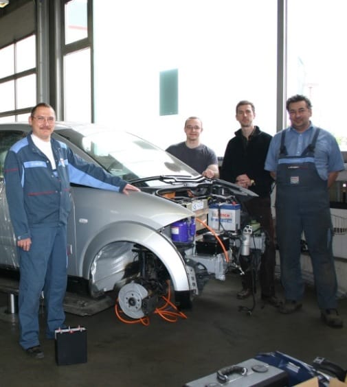 Damit aus einzelnen Komponenten auch ein alltagstaugliches Elektrofahrzeug entstehen kann, sind unter anderem die Kfz-Mechatroniker und -Mechaniker von car systems Scheil in Leipzig gefragt. Mit dem Umbau eines konventionellen Audi A2 von Benzinbetrieb auf reinen Elektroantrieb gelang Geschäftsführer Jens Scheil und seinem Kfz-Team ein echtes Meisterstück. "Nach einem Jahr Entwicklungszeit konnten wir in Zusammenarbeit mit dem Unternehmen L.E. mobile den ersten Prototypen fertigstellen", berichtet Scheil. Das umgebaute Fahrzeug erreicht eine beeindruckende Reichweite von bis zu 120 Kilometern, ohne Stopps für Ladezeiten zu benötigen. Dabei kann das Fahrzeug eine Spitzengeschwindigkeit von 130 km/h erreichen.