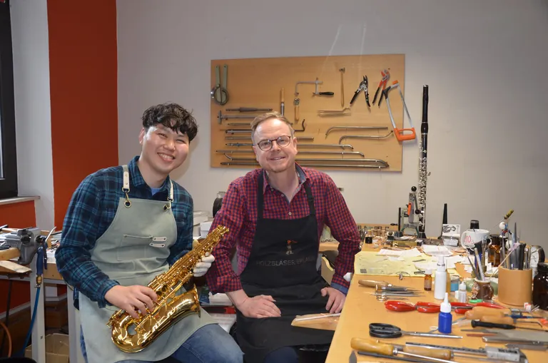 Kapellmeister lernt Instrumentenbau Ein Geselle aus Südkorea für die Holzbläserwerkstatt