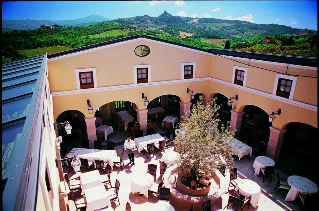 Wer jetzt sagt "den Wein trinke ich lieber", ist im Adler Thermae ebenfalls bestens aufgehoben. Von den 23 Kellnern im Restaurant, das ähnlich einer italienischen Piazza mit einem Brunnen in der Mitte gestaltet ist, sind 18 diplomierte Sommeliers. Alfredo zum Beispiel ist einer von ihnen. Er weiß genau, welche ausgewählte Tropfen der toskanischen Weinhochburgen zu dem jeweiligen Fünf-Gänge-Menü von Küchenchef Gaetano Vaccaro passen, die jeden Abend bei Kerzenschimmer serviert werden. Vaccaro und sein Team sind Meister darin, traditionell-toskanische Gerichte durch erlesene Zutaten wie Safran aus der Val d'Orcia oder 30-jährigem Weinessig aus der Toskana, zu verfeinern.