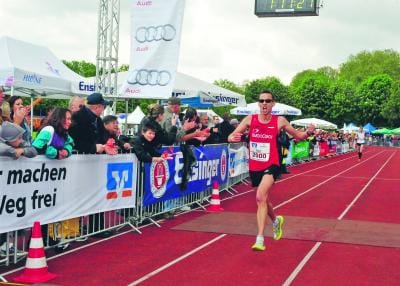 20-°C-Grenze und zuweilen sei der Lauf zu einer Art Hitzeschlacht ausgeartet. Diesmal kam zur Kälte noch ein anhaltender Gegenwind hinzu. Und auch am Ziel war es mit 12 °C nicht wirklich viel wärmer. Mit seiner Zeit von 03:41 Stunden ist er mit Blick auf die nächsten Wettkämpfe dennoch ganz zufrieden. Quellmalz hat sich schon weitere athletische Ziele gesetzt. Sein nächster Wettkampf ist der Breisgau-Triathlon in der Nähe von Karlsruhe und der Höhepunkt in diesem Jahr soll der Ironman in der Schweiz werden. Auch beim Trollinger-Marathon will er im nächsten Jahr wieder dabei sein. Denn dieser Lauf sei einfach herrlich. Quellmalz erstaunt immer die besondere Stimmung an der Strecke. „Die Leute sitzen draußen, frühstücken oder trinken ein Glas Wein.“ Überhaupt sei die Organisation eine der besten in Deutschland.