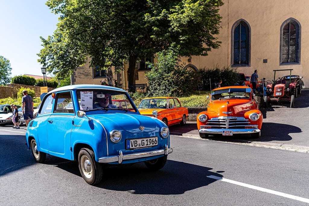 Während sich die meisten der Besucher durch das Zentrum der Kleinstadt drängen – vorbei am Goggomobil des pensionierten Zerspanungsmechanikers Peter Klein aus Herbstein oder vor der Bühne beim Auftritt von Rock’n’Roll-Altstar Peter Kraus –, machen es sich die Gäste auf dem Oldtimer-Campingplatz in ihren Klappstühlen bequem. Auf dem Gelände entlang der Stadtmauer sind nur Fahrzeuge, Wohnwagen oder Campingutensilien erlaubt, die bis 1975 gebaut wurden.
