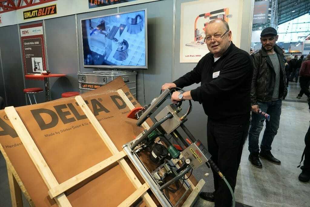 Nach 20 Jahren immer noch ein Renner: Willi Medwed präsentierte seinen Einlatt-Blitz auf der Messe Dach+Holz in Stuttgart. - © Ulrich Steudel