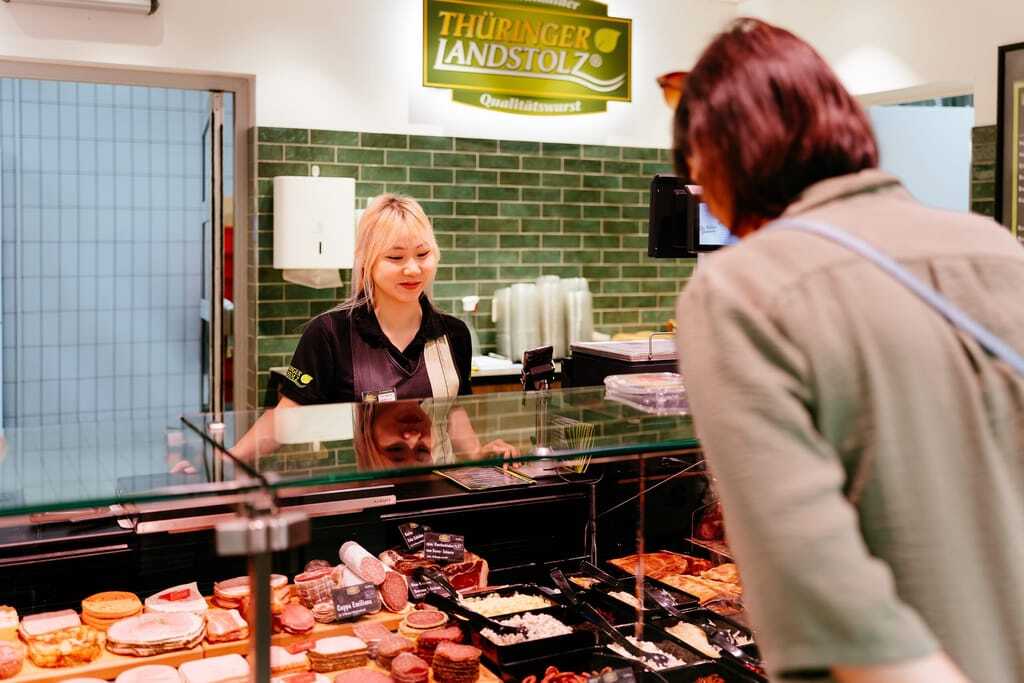 Thu Trang Nguyen steht hinter der Fleischertheke. Ohne Scheu geht sie auf die Kunden zu. "Ich freue mich, dass ich mit Menschen zu tun habe. Es ist wichtig, miteinander zu sprechen, auch wenn ich mal Fehler mache", sagt die 23-jährige Vietnamesin.
