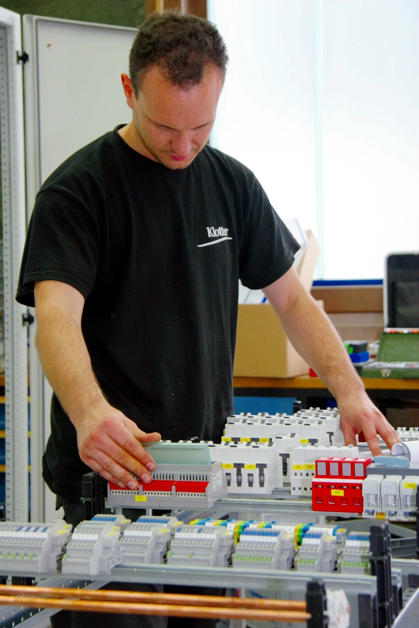 Klotter kennt den Fachkräftemangel, seit er angefangen hat, sagt er. Umso mehr in einer so prosperierenden Gegend wie Mittelbaden. Zehn Stellenausschreibungen stehen derzeit auf seiner Webseite. Da die Suche jedoch äußerst mühsam und oft vergeblich ist, setzt er auf Ausbildung. Seinen ersten Lehrling stellte er 2001 ein. Stefan Burkart arbeitet noch immer für ihn und leitet inzwischen die Fertigung Schaltanlagen- und Verteilerbau. Für das kommende Jahr hat er bereits vier Lehrlinge eingestellt. Die jungen Leute kommen jedoch nicht zu Klotter, weil er so gut bezahlt. Die Gehälter sind eher durchschnittlich und finanziell wäre bei der Industrie meist mehr drin. Was nach Ansicht des Chefs aber viel wichtiger ist, ist das Betriebsklima und das Vertrauen in die Kompetenz der Mitarbeiter.