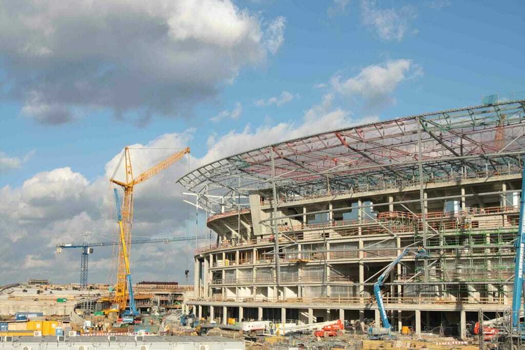 Handwerker aus insgesamt 15 Nationen arbeiteten unter der Leitung des deutschen Bauunternehmens Hand in Hand, um das Stadion rechtzeitig fertigzustellen. Vom Beton- über den Trockenbauer bis hin zum Elektroniker und Fliesenleger haben unzählige Handwerker dafür gesorgt, dass das Stadion auf dem neusten Stand der Technik ist und in seiner transparent weißen Hülle auch optisch einen guten Auftritt hinlegt. „Das deutsche Handwerk“, sagt Stark, „ist im Ausland hoch angesehen, denn es steht für Qua-lität und Genauigkeit.“