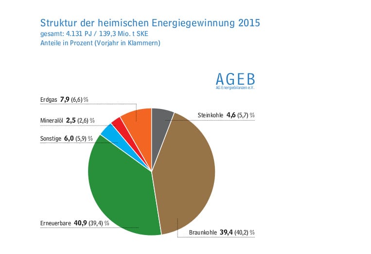 Nach Angaben der Arbeitsgemeinschaft Energiebilanzen deckte die heimische Energiegewinnung allerdings nur 31 Prozent des gesamten Verbrauchs von 13.306 Petajoule (PJ). Deutschland bleibt also von stark von Importen abhängig.