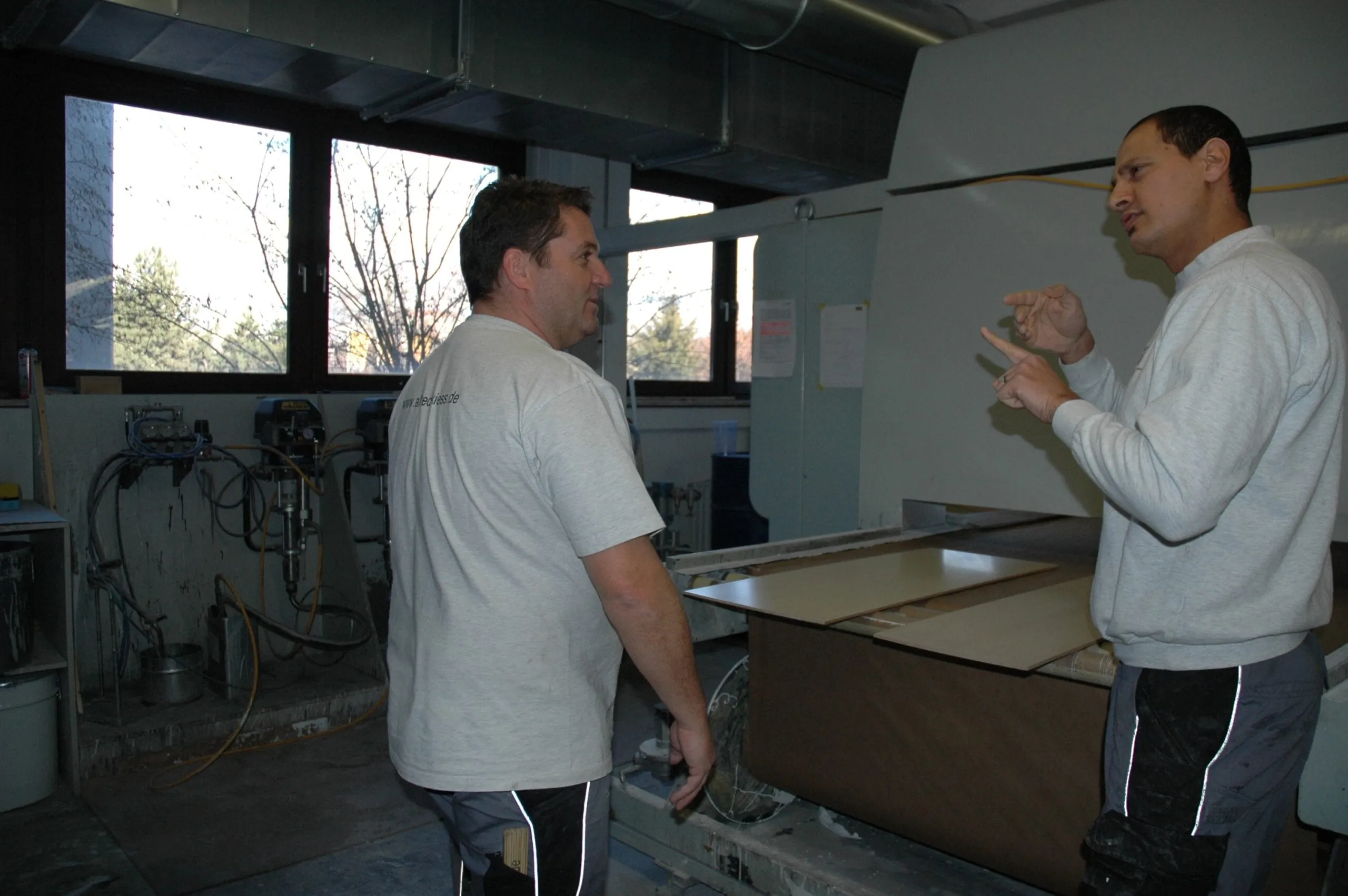 Seit drei Jahren arbeitet Chebbi bei Kiess Innenausbau und bedient eine komplexe Maschine für Oberflächenbearbeitung. Er ist einer von vier schwerbehinderten Mitarbeitern, die die Firma beschäftigt. Mit Andrei Hergert ist ein weiterer Maschinenführer in der Fertigung gehörlos. Eine Bürokraft hat nach einer Organtransplantion hier wieder ins Berufsleben zurückgefunden. Und ein Schreiner ist nach einem Bandscheibenvorfall nur noch eingeschränkt belastbar.