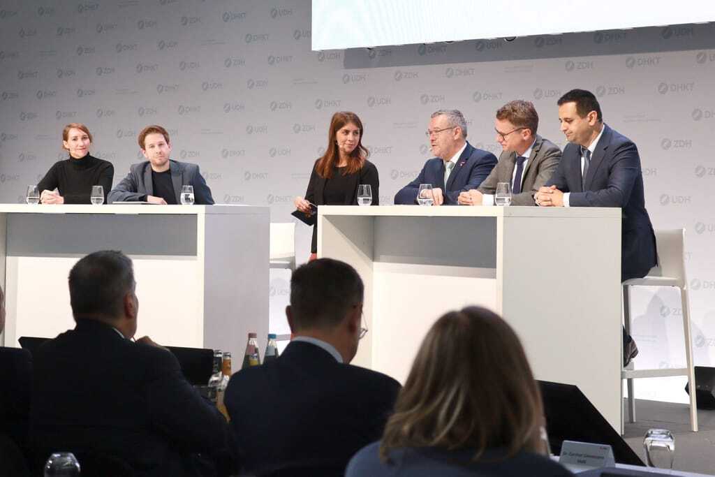 Von der Politik fordert Handwerkspräsident Jörg Dittrich denn auch klare Ziele und deren schnelle Umsetzung. "Es ist Zeit für Pragmatismus, Realpolitik und echte Reformen", sagte er. Politischen Ankündigungen müssten endlich Taten folgen. Ziel müsse es sein, die Standortbedingungen in Deutschland langfristig zu verbessern, sagte er in Richtung der Diskutanten auf dem Podium, der politischen Geschäftsführerin der Grünen, Emily May Büning, sowie den Generalsekretären Kevin Kühnert (SPD), Bijan Djir-Sarai (FDP) sowie Carsten Linnemann (CDU).