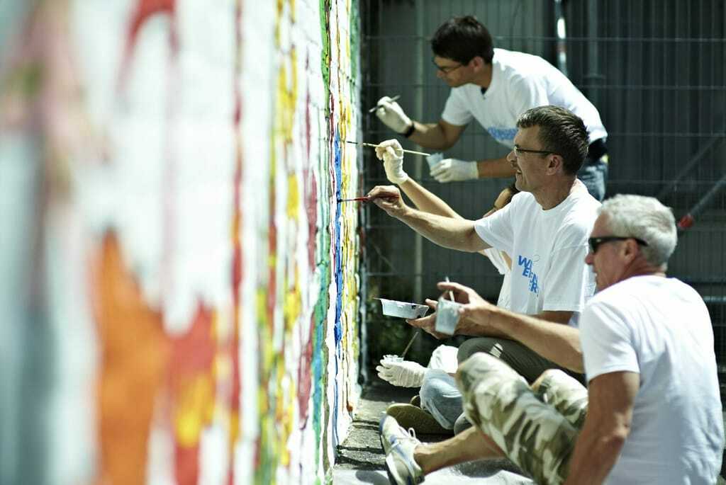 Bei "Wiesbaden engagiert" setzen sich Mitarbeiterinnen und Mitarbeiter von Unternehmen einen Tag lang für gemeinnützige Projekte in Schulen, Altenheimen oder Behindertenwerkstätten ein. Themenschwerpunkte sind "Anpacken und Gestalten", "Aktiv sein" und "Know-how weitergeben". In diesem Jahr wurde das zehnjährige Jubiläum gefeiert.