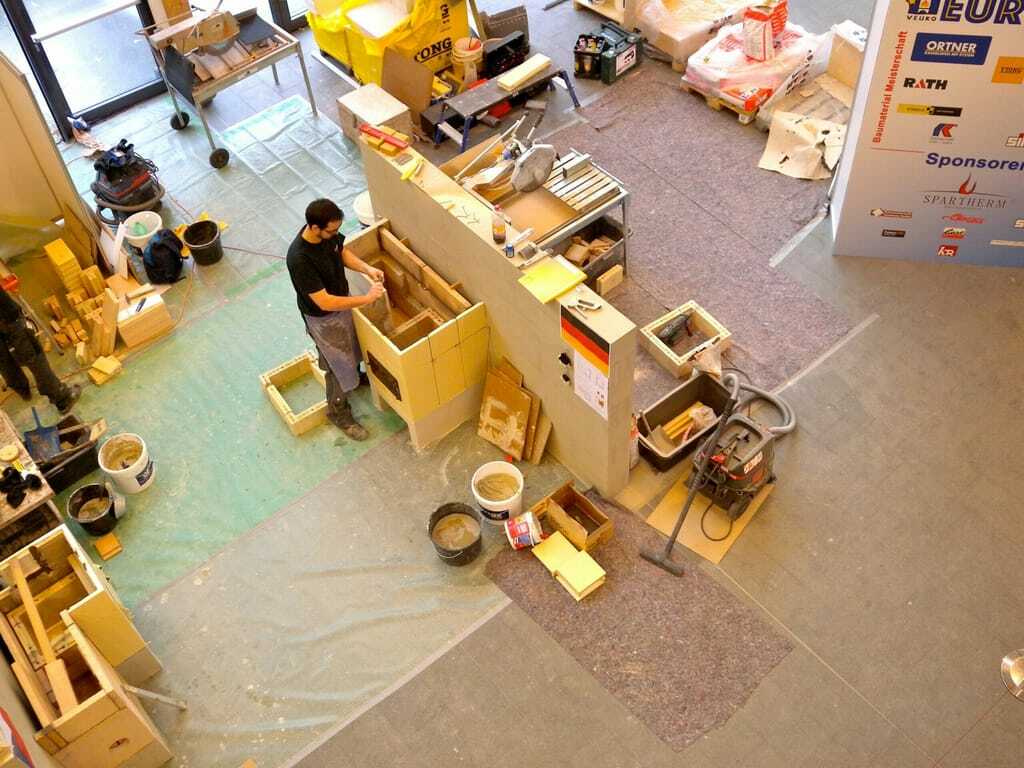 Während den Meisterschaften mussten die jungen Handwerker einen Grundofen handwerklich fertigen – inklusive keramischer Zügen auf einem Gasbetonsockel. Der Sockel und die vorbereitenden Arbeiten durften am Vortag, vor der offiziellen Meisterschaft, erledigt werden.