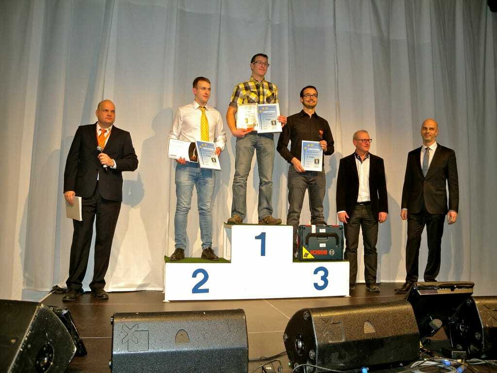 Die besten Ofenbauer Europas: Gold gewann Christoph Enzler (Schweiz), Silber Christoph Mayerhofer (Österreich) und Bronze Alexander Hummels (Deutschland). - © Foto: ZVSHK