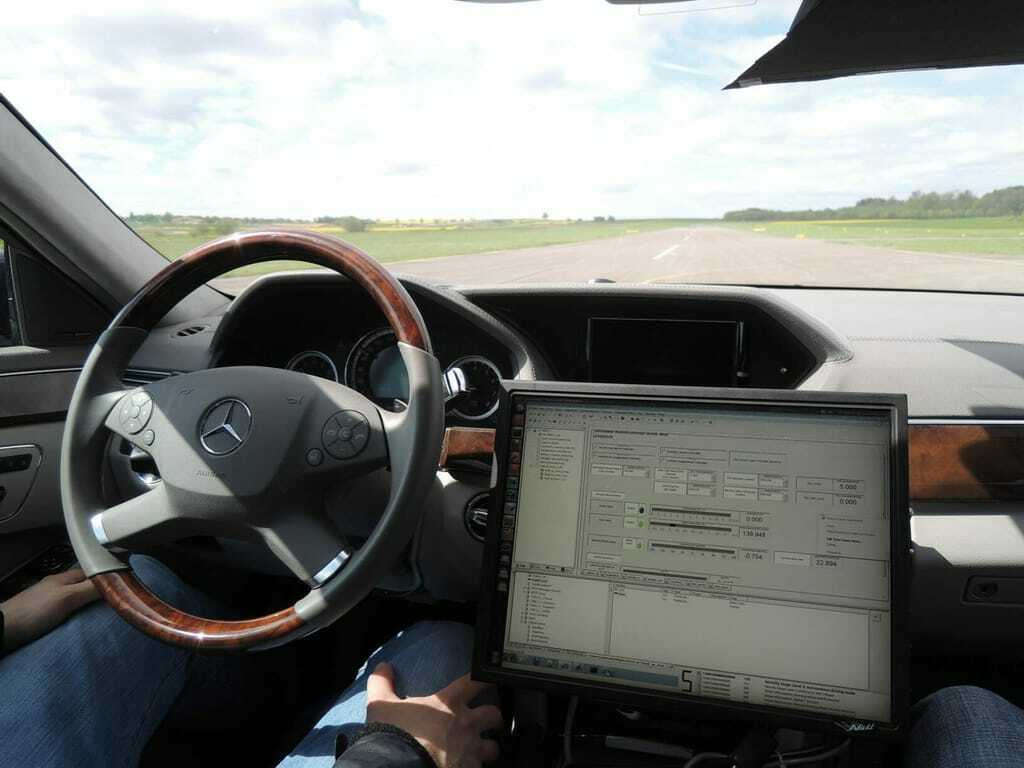 Abgesegnet vom TÜV und mit einer Ausnahmegenehmigung des Regierungspräsidiums rollt ein Erprobungsfahrzeug der Uni Ulm ohne Fahrereingriff durch die Straßen der Stadt. Andere Verkehrsteilnehmer müssen sich aber keine Sorgen machen: „Obwohl das Fahrzeug eigenständig durch den Stadtverkehr manövrieren wird, sind immer noch zwei geschulte Sicherheitsfahrer an Bord, die bei Fehlfunktionen eingreifen können“, sagt Klaus Dietmayer, Direktor des Instituts für Mess-, Regel- und Mikrotechnik und Experte für Fahrerassistenzsysteme.