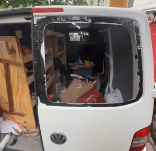 Zerstörte Scheibe, durchwühltes Fahrzeug: Zimmerermeister Laurin Bock wurde Opfer eines Diebstahls. Unter anderem wurden mehrere Sägen aus seinem Handwerker-Fahrzeug entwendet. - © Screenshot/Instagram-Kanal "derholzbock.official"