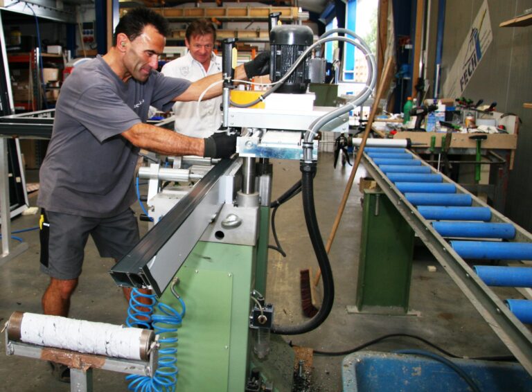 Metallbaukonstrukteur Richard Deffner fräst eine Leiste zurecht. Jedes Fenster bei Fech ist eine Maßanfertigung. - © Geimer