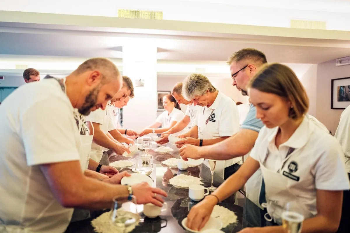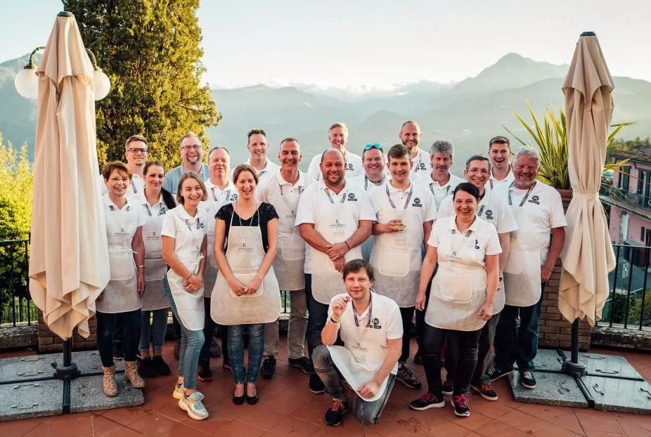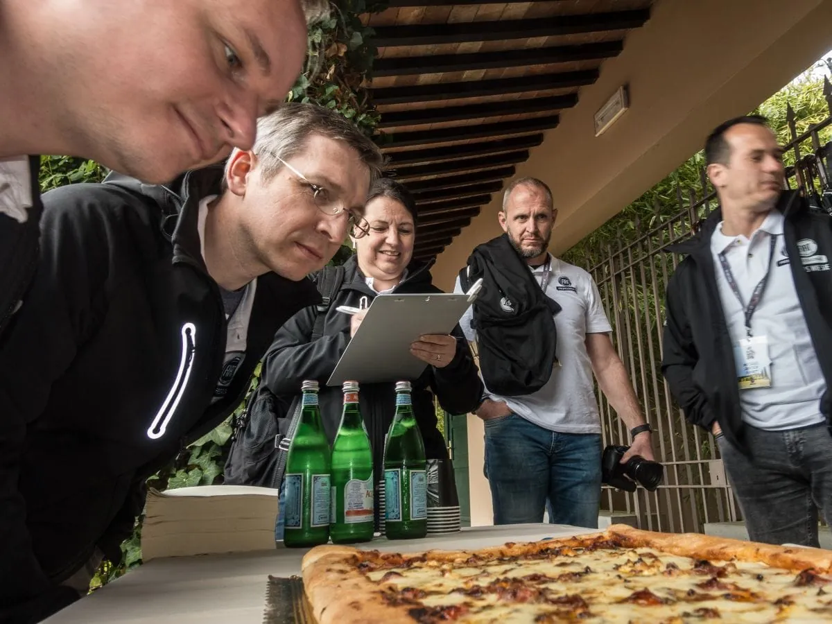 Zum großen Finale der Fiat Professional Team Trophy am Abend trafen sich dann Dachdecker, Elektro- und Kunststofftechniker, Maschinen- und Metallbauer, SHK-Installateure sowie Fracht- und Kurierdienstfahrer mit Küchenschürze zum Pizzabacken. Und bewiesen eindrucksvoll, wie vielseitig begabt Handwerker sind. Die Pizzen, die an zwei langen Tafeln im Quartier in Castelvecchio Pascoli entstanden, konnten es allesamt mit dem italienischen Vorbild aufnehmen.