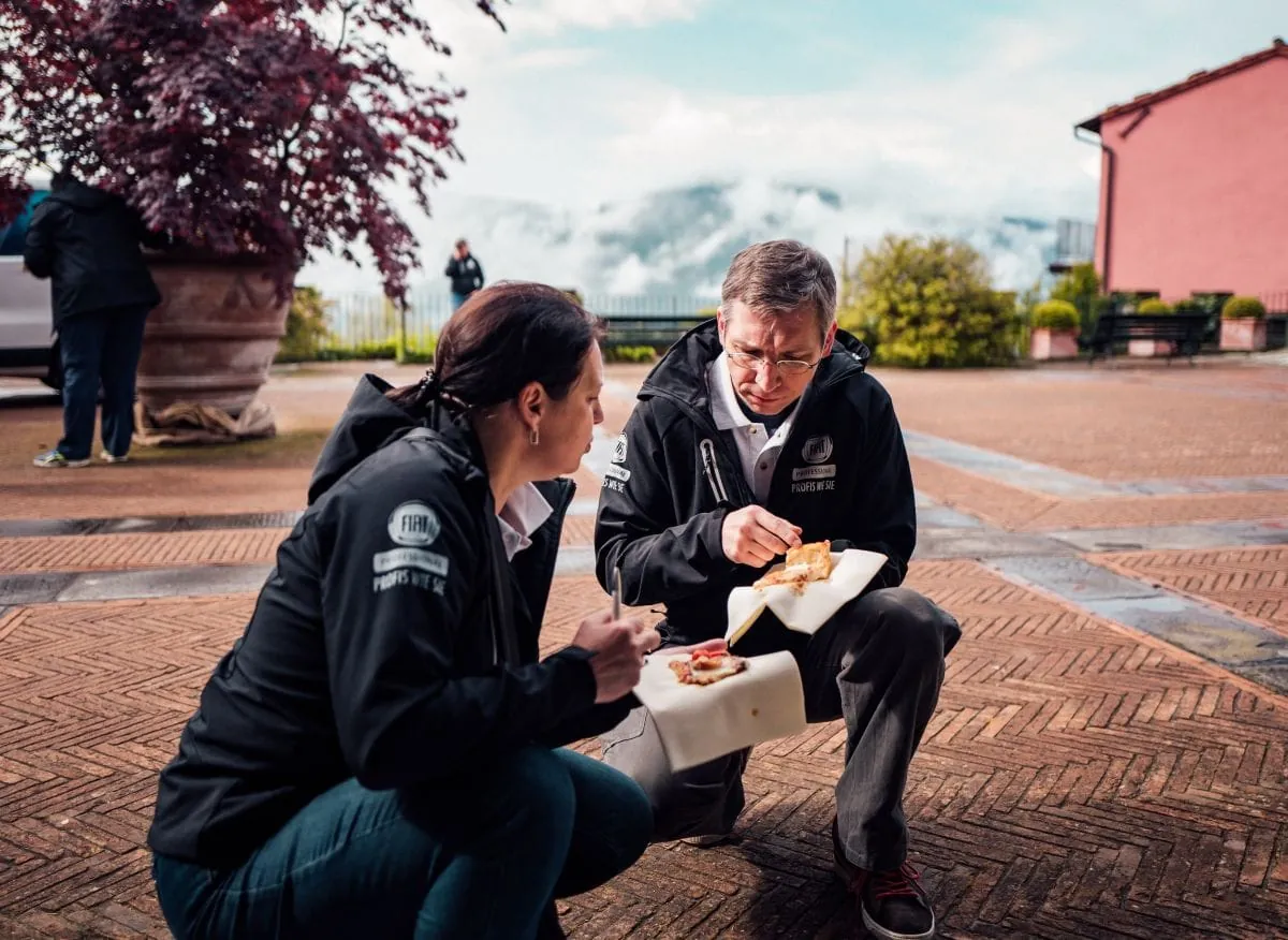 Den ganzen Tag lang steuerten die zehn Teams ihre Transporter durch die Gegend um Lucca, um in urigen Feinkostläden die Spezialitäten für ihre Pizza zu beschaffen. Die Quittung und ein Foto dienten der Jury als Beweis, dass die Teilnehmer auch in den richtigen Geschäften eingekauft haben, die in malerischen Orten wie Montecarlo oder Villa Basilica zu finden waren. Dabei wurde mitunter schon die Parkplatzsuche in den engen Gassen zu einer Herausforderung. „Zum Glück erwies sich der Talento trotz langem Radstand als recht wendig, so dass wir immer noch eine Lücke gefunden haben, selbst beim hektischen Markttag in Braga“, sagte André Bernt, der vomFiat Talento durchaus positiv überrascht war. Der 145 PS starke Motor entwickelte selbst aus dem unteren Drehzahlbereich heraus genug Kraft, um nach den teils engen Kurven am Berg wieder ordentlich zu beschleunigen.
