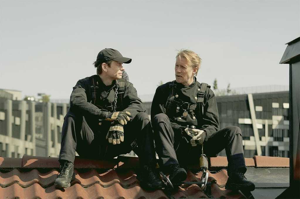 Bevor der norwegische Regisseur und Drehbuchautor Haugerud sein erstes Dialogfeuerwerk abbrennt, sehen wir die zwei Handwerker bei ihrem Tagesgeschäft: Die Schornsteinfeger, die von Jan Gunnar Røise und Thorbjørn Harr gespielt werden und deren Namen wir den gesamten Film über nicht erfahren, balancieren bei strahlendem Sonnenschein auf Dächern, reinigen vor prachtvoller Kulisse schmutzige Schornsteine und hantieren gekonnt mit ihren Kaminbesen. Auch ohne Worte wird klar: Die beiden Norweger sind Handwerker mit Leib und Seele. Sie lieben ihren Job und führen ihn mit Leidenschaft aus. Auch ihre traditionelle schwarze Kluft mit den metallenen Knöpfen ist auf den ersten Blick kaum von der der deutschen Schornsteinfeger zu unterscheiden.