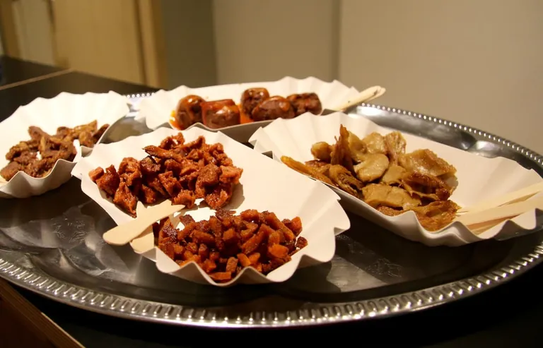 Bedient werden beim "Vegetarischen Metzger" in der Bergmannstraße übrigens nicht nur trendige Hipster und Öko-Aktivisten, sondern viele Neugierige und auch immer mehr ältere Menschen schauen sich den Laden interessiert an, der erst seit dem 15. September geöffnet hat. "Heute Morgen war ein Ehepaar hier, beiden schon um die 70. Die konnten beim Probieren gar kaum glauben, dass sie da gerade kein Fleisch essen", sagt Florian Tenfelde und lacht, während er ein Tablett mit Kostproben von Hühnchenstreifen, Fleischbällchen und Speckwürfeln serviert. Er testet selbst – allerdings nicht die Speckwürfel, denn Speck mag er nicht – auch nicht den veganen. "Dass ich den nicht esse, zeigt wie nah er am Original dran ist. Den typischen Speckgeschmack mag man oder eben nicht."