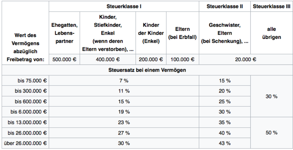Übersicht der Freibeträge und Steuersätze bei Erbschaften