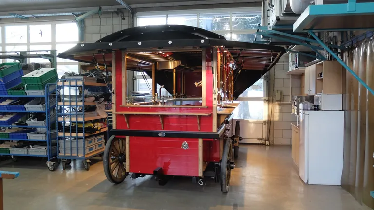 In einem lichtdurchfluteten Nebenraum der Werkstatt steht der Wagen mit der Nummer 185. Stolz präsentieren die beiden Handwerker ihr letztes Projekt: einen vierrädrigen, rot lackierten Verkaufs- und Marktwagen. Von außen ein nostalgischer Anblick, denn der Wagen gleicht einer Kutsche, wie man sie sonst nur aus Western-Filmen kennt. Der Innenraum des Wagens ist hingegen mit einer modernen Küche und einigen luxuriösen Sonderanfertigungen ausgestattet. "Jeder Wagen ist ein Unikat und wird speziell nach den Vorstellungen der einzelnen Kunden angefertigt", erklärt Pistner. Dieser knapp drei Meter lange und über eine Tonne schwerer Wagen soll zunächst auf der Hotellerie und Gastronomie Messe (HOGA) in Nürnberg als Exponat ausgestellt werden. "Die Kunden können sich gleich von der Qualität unserer Wagen überzeugen. Jede noch so kleine Schraube wird von uns mit Liebe zum Detail eingebaut", berichtet Pistner stolz.