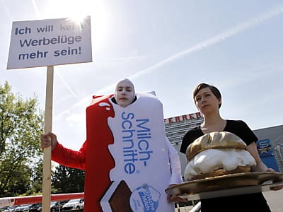 Der Süßwarenkonzern Ferrero bewerbe die "Milch-Schnitte" mit dem Slogan "Schmeckt leicht. Belastet nicht. Ideal für zwischendurch" und mit der Unterstützung wechselnder Spitzensportler, sagte Markwardt. Tatsächlich sei das Produkt mit einem Zucker- und Fettgehalt von rund 60 Prozent alles andere als sportlich oder leicht.