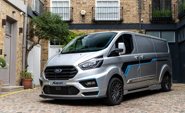 Den Ford Transit Custom MS-RT gibt es mit kurzem oder langem Radstand als Zwei- oder Dreisitzer sowie als Doppelkabine mit fünf Sitzplätzen. Auch den Ford Tourneo Custom als Bus mit acht Einzelsitzplätzen und PKW-Zulassung gibt es als MS-RT-Umbau. Ins Auge stechen die 18 Zoll großen Racing-Leichtmetallräder (gegen Aufpreis gibt es sogar 20-Zoll-Räder), die in Verbindung mit den tieferen Blattfedern von der Firma Eibach ein besseres Handling bieten, ohne dass dafür die Nutzlast beeinträchtigt wird.