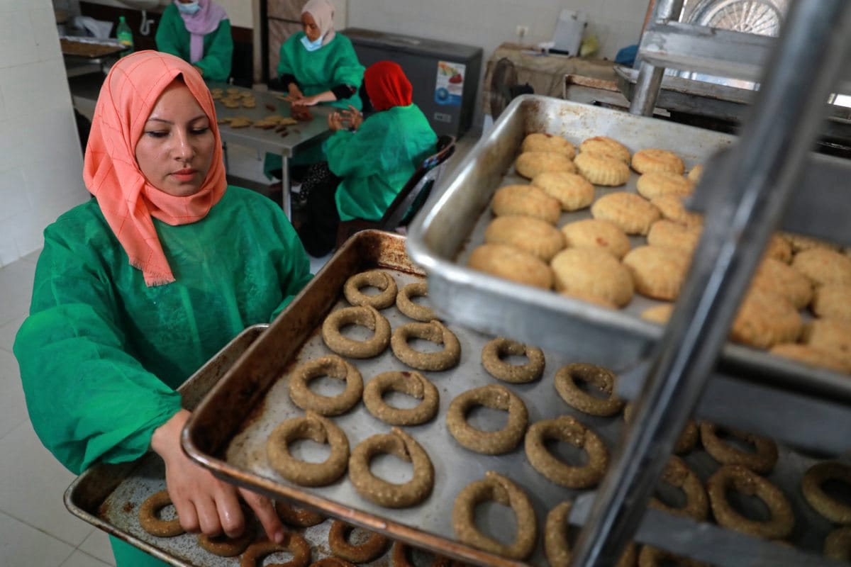 © picture alliance / NurPhoto | Majdi FathiPalästina:Eine palästinensische Frau bereitet die traditionellen Gebäckstücke mit Dattelfüllung für das islamische Opferfest zu. Diese "Dattelkekse" haben regional unterschiedliche Namen.