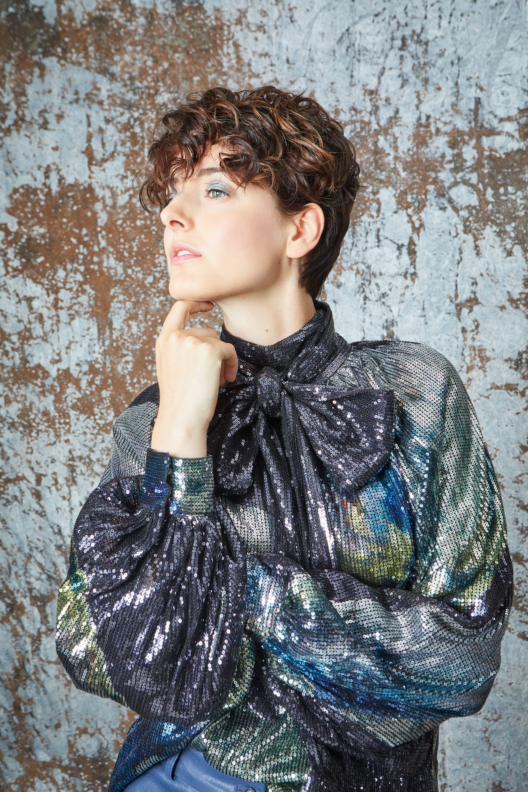 © Zentralverband FriseurhandwerkDer Shag-Schnitt ist ein Klassiker – im Herbst und Winter 2021/2022 wird er durchgestuft und mit fransigen Spitzen getragen. Durch die unterschiedlichen Längen entsteht ein Kontrast zum rund geföhnten glatten Pony im 90er-Jahre-Stil. -