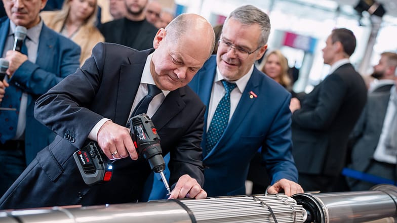 Seinem Vorgänger Olaf Scholz (SPD) begegnete Dittrich mehrfach auf der Internationalen Handwerksmesse. Diese Aufnahme entstand 2024.
