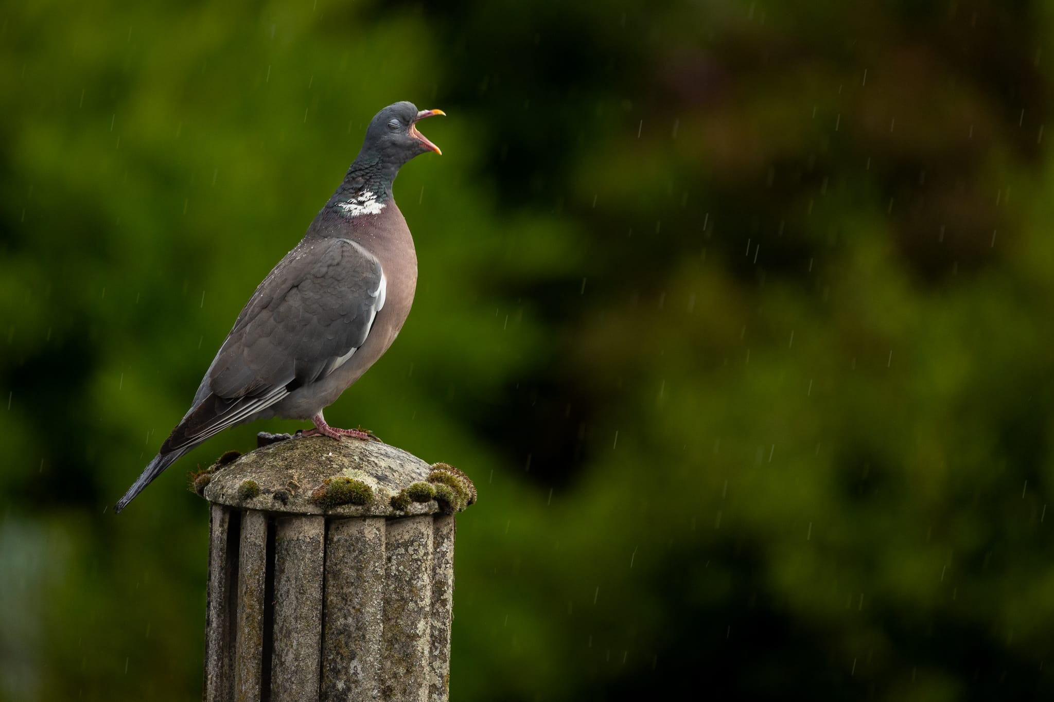 "I'm singing in the rain", gurrt diese Taube.