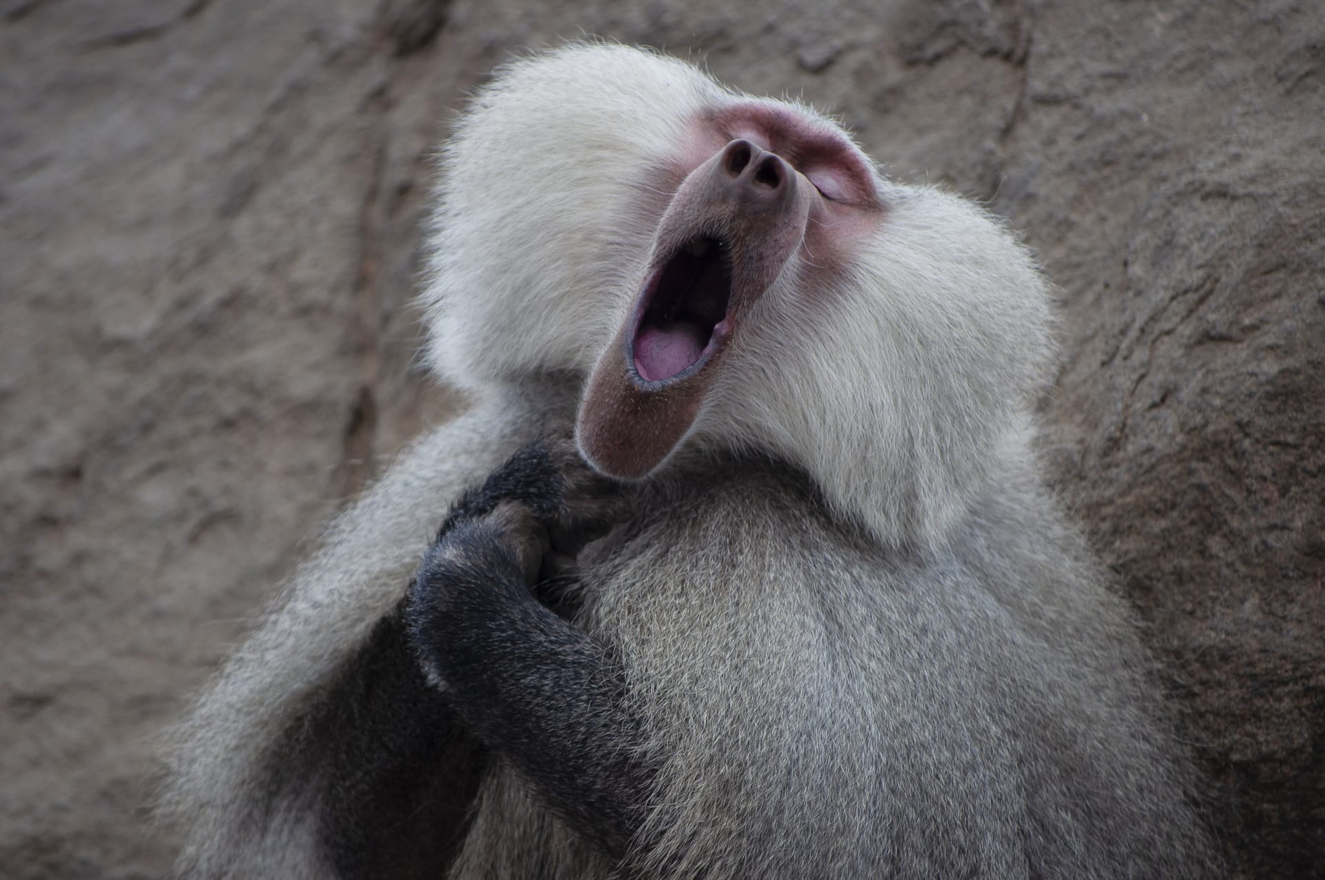 © Clemence Guinard / Comedy Wildlife Photography Awards 2021Ein Liebeslied für die Angebetete oder anmutiges Gähnen? Dieser Hamadryas-Pavian wurde in Saudi-Arabien fotografiert. -
