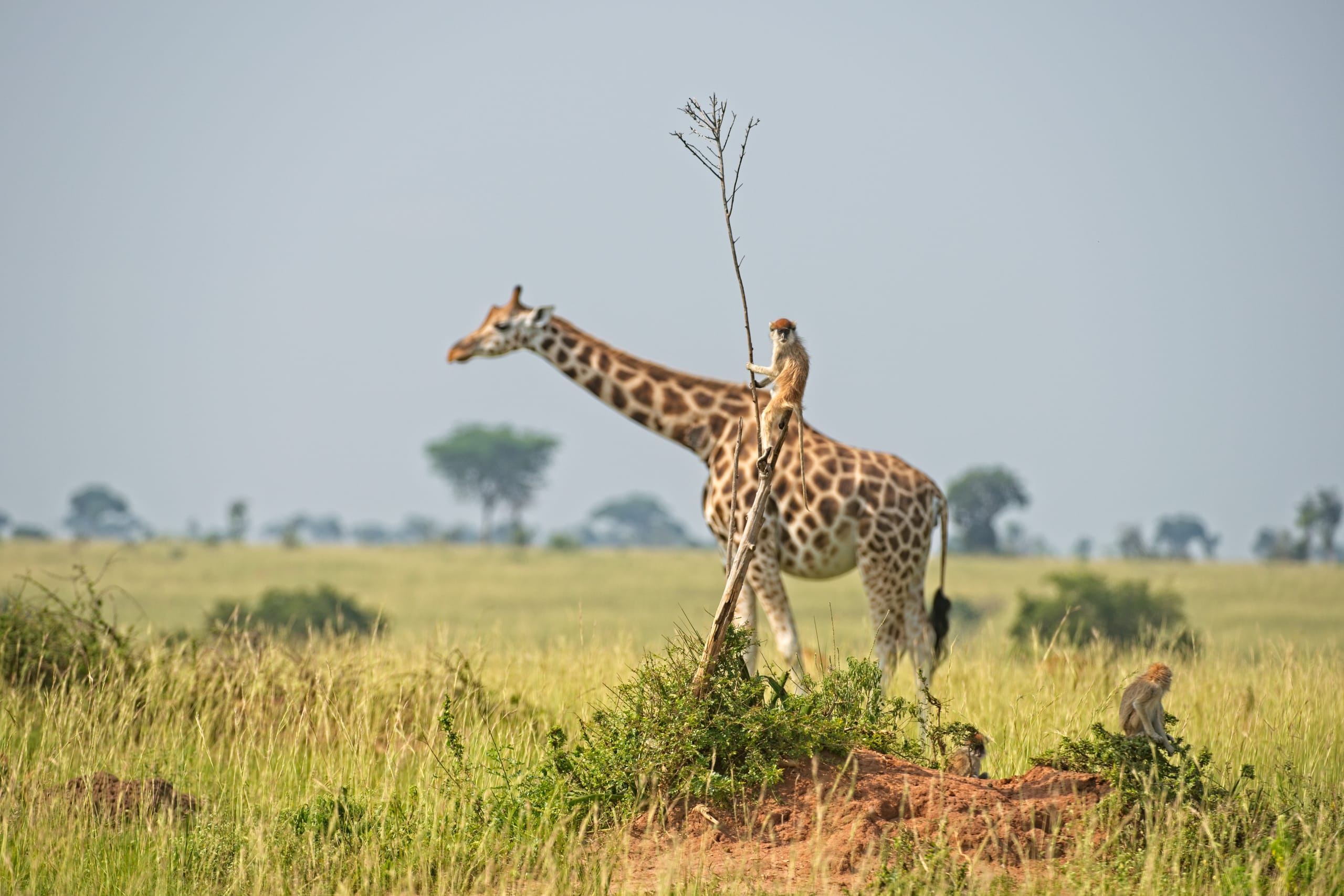 © Dirk-Jan Steehouwer / Comedy Wildlife Photography Awards 2021Wenn man sich als Affe kein Auto leisten kann, muss eben der Rücken einer Giraffe her. Fotografiert in Uganda. -