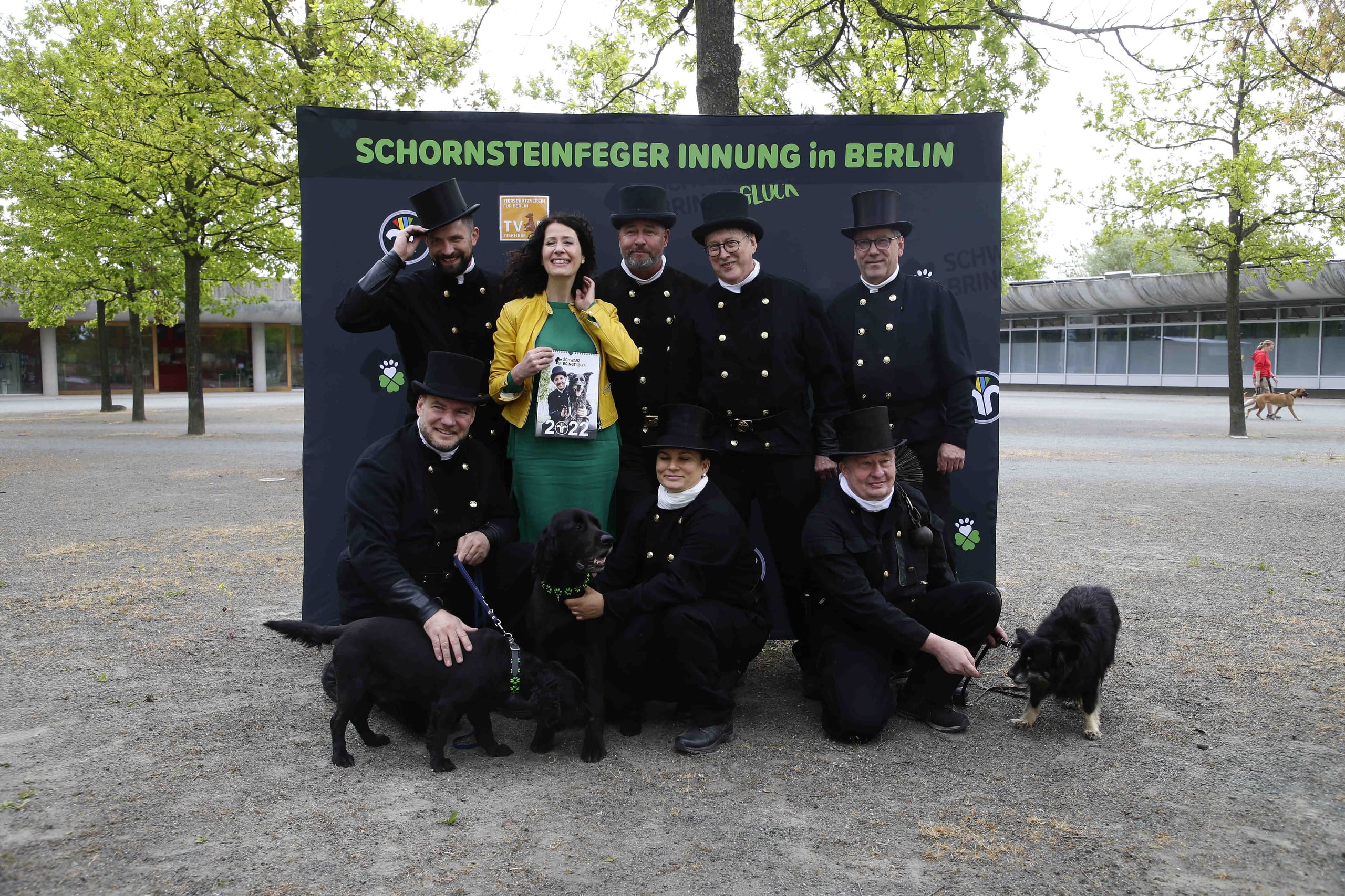 Aus Solidarität fühlten sich die Berliner Schornsteinfeger berufen, als Glücksbringer in "Schwarz" zu helfen. 2020 war das Kalenderprojekt mit dem Namen "Schwarz bringt Glück" geboren. Und auch 2023 gibt es wieder eine neue Kalenderausgabe. Das Shooting dafür fand am 13. Mai im Tierheim Berlin statt. Dabei unterstützte die Senatorin für Umwelt, Mobilität, Verbraucher- und Klimaschutz des Landes Berlin, Bettina Jarasch (grünes Kleid). Ein paar der tierischen Kalendermotive gibt es in dieser Bildergalerie. -