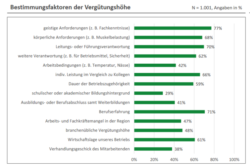 © Grafik: Entgeltsysteme und Incentives im Handwerk/Ludwig-Fröhler-InstitutBildungshintergrund oder formale Abschlüsse spielen im Handwerk eine weniger große Rolle als die Frage, welche geistigen Anforderungen auf der Stelle gefordert sind und ob sie mit viel Verantwortung verbunden ist. -